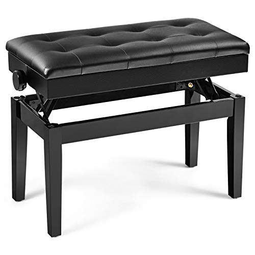 Höjdjusterbar Pianobänk med Förvaring, Svart