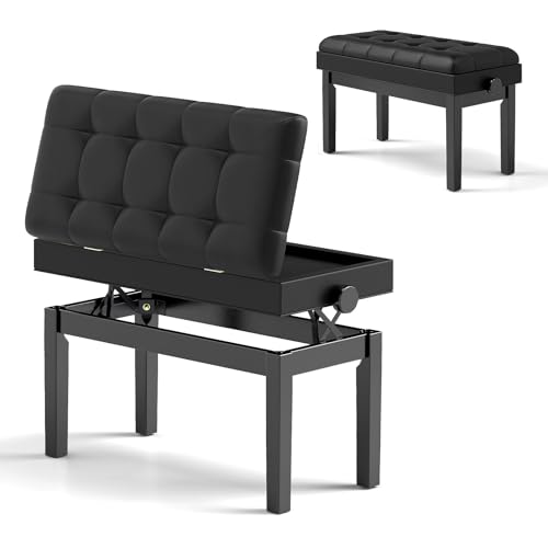 LIFEZEAL Dubbel pianopall, justerbar pianotall, pianobänk med förvaringslåda, pianobank av PU-läder, pianopall för 2 personer, svart