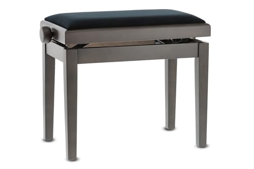 GEWA Pianobänk Deluxe mörk matt valnöt (smidig höjdjustering via exakt saxmekanism, tillverkad av högkvalitativt massivt trä, hållbar och robust, hög brytbelastning)