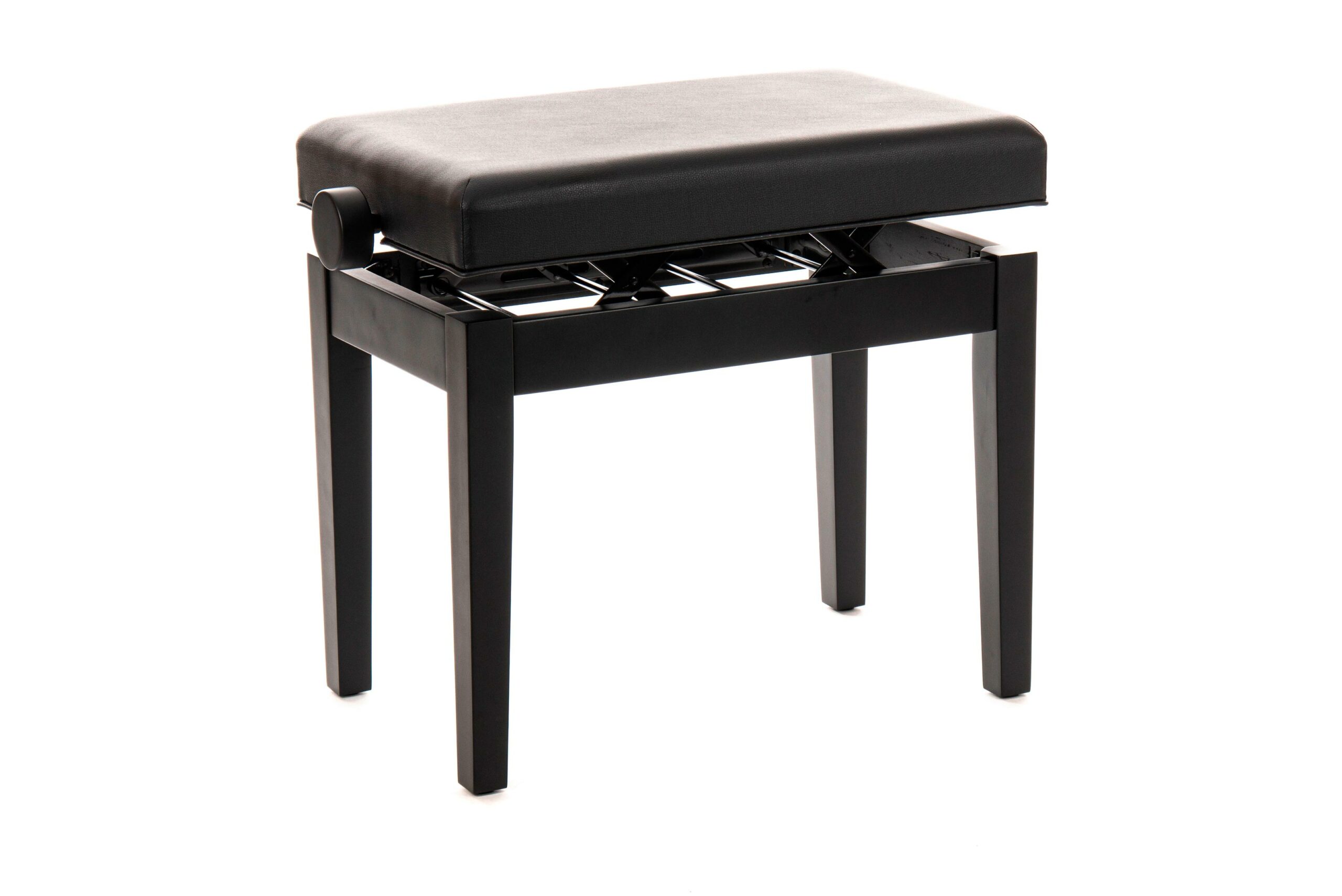 GEWA Pianobänk Deluxe Vinyl - Svart matt - Massivt trä - Sitsöverdrag i vinyl - Sits 52x30cm - Höjdjusterbar - Höghållfast infästning - 2t brottlast