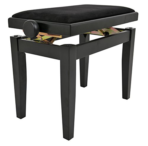 Juan Miguel Navarrez Pianobänk Elegance svart matt - Massivt trä - Höjdjusterbar genom saxmekanik - Velour klädsel svart