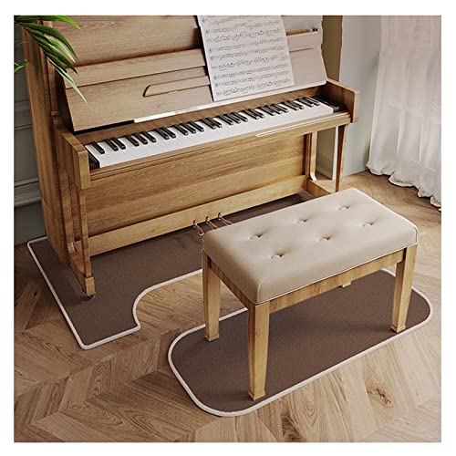 Piano ljudisolerad matta, 160 × 70 cm professionell pianomatta, ljudisolerad golvmatta för upprätt piano + pianopall halkfria kuddar, ljudabsorberande pianofilt u-form (färg: brun)