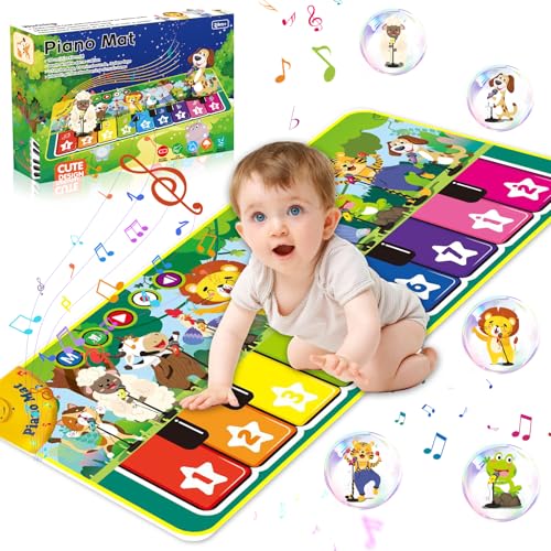 BBLTIFF Piano baby, dansmatta med 10 djur, baby musikalisk matta, barns pianomatta, musiklekmatta perfekt för pojkar och flickor (110 × 43 cm)
