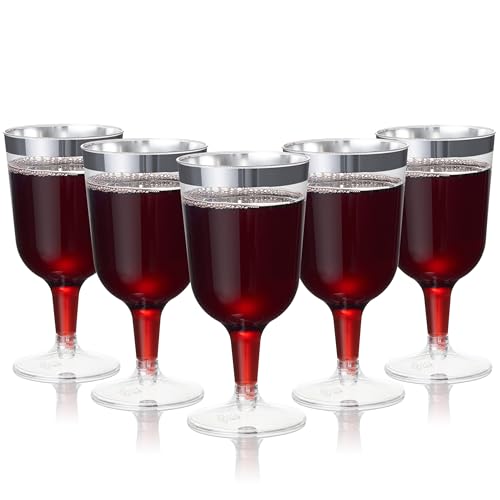 MATANA 24 Eleganta Klara Hårda Plastvinglas med Silverkant (180 ml) - Stadiga & Återanvändbara Glas för Cocktails, Dessert - Födelsedagar, Bröllop, Jul, BBQ, Picknick, Fester