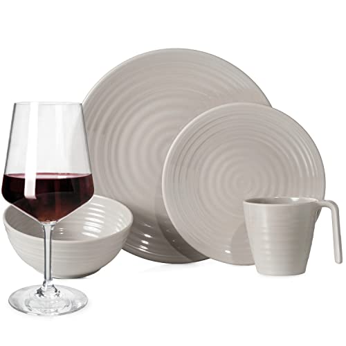 Melamin campingservis för 4 personer Kaffe design, 16 delar + 16 Tiamo-glas, vattenglas, vinglas, champagne-glas, servis, picknick, BBQ, köksporslin