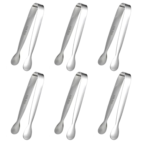 6 stycken rostfritt stål sockertänger, 11 cm godisbar tänger liten serveringstång isbitstång serveringstång bakverk tång istång set för bröllop fest bar bufffett grill picknick