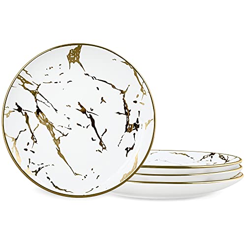 fanquare 25 cm guldmarmor middagstallrikar set med 4, keramiska stora middagstallrikar, vit middagsservis för hushåll, picknick, Guld middagstallrik
