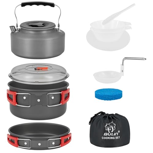 Bulin Camping köksredskap i rörsats, non-stick backpacking matlagnings set, utomhus matlagningsutrustning för familjevandring, picknick | Lätta köksredskap set (kittel, krukor, stekpanna, BPA-fria