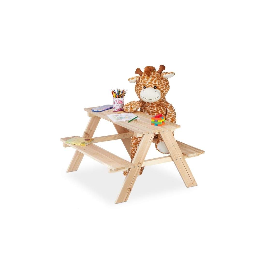 Relaxdays Picknickbord för 4 barn, av furu, H x B x D: 51 x 90 x 78 cm, trädgård, natur