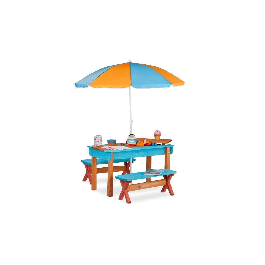 Relaxdays Picknickbord för 4 barn, av furu, H x B x D: 51 x 90 x 78 cm, trädgård, blå och brun