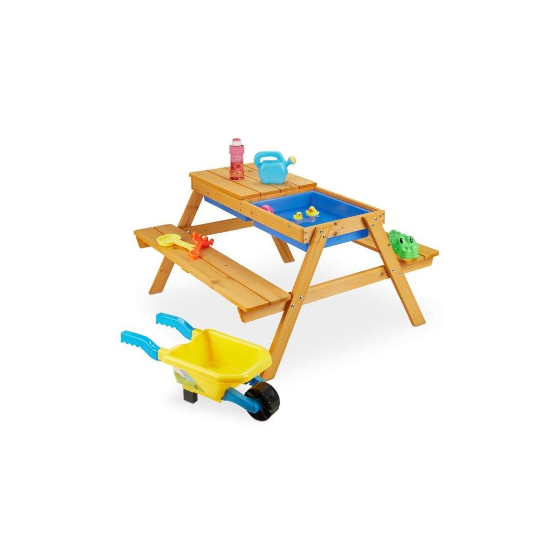 Relaxdays Picknickbord för barn, trädgårdsbänk för barn, sand- och vattenlek, HWD: 50 x 89 x 86 cm, utomhusmöbler, brun, plast, trä