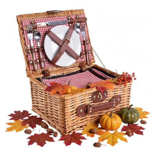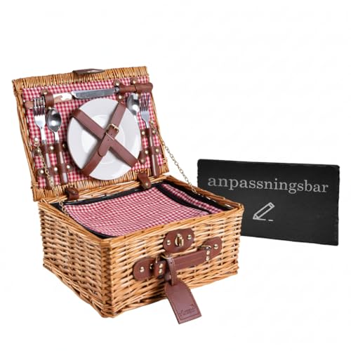 eGenuss Picknickkorg i vide för 2 personer med tillbehör & isolerad KylväSka | Picknickkorgset för camping, perfekt gåva | Röd