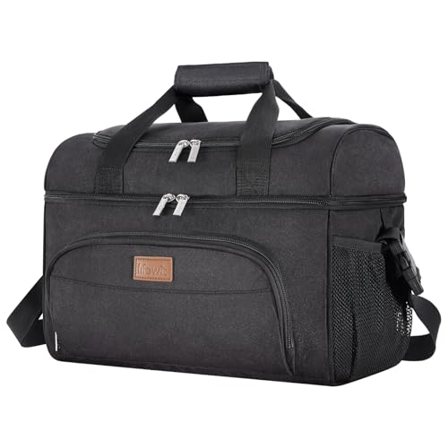 Lifewit Isolerad kylväska shoppingväska 23 L 32 burkar picknickväska för strand/sport, dubbelfack kylväska, svart