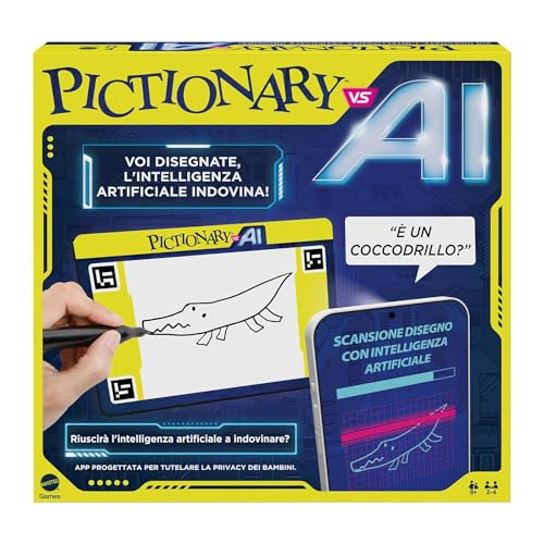 Mattel Games Pictionary Vs. AI - Pictionary-versionen med artificiell intelligens, spelare ritar och AI gissar, spelkvällar för alla åldrar, italiensk version, 8+ år, HYH79