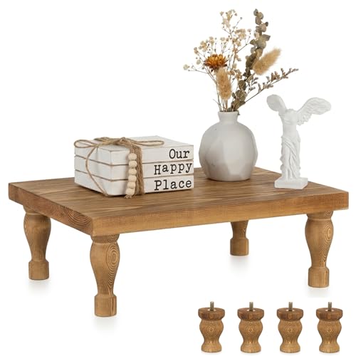 Hanobe Dekorativ träbricka: bondgård trä piedestal visningsstativ rustik bricka upphöjare mittpunkt för kaffebar kök matsal hem bordsdekor, kort och hög fot