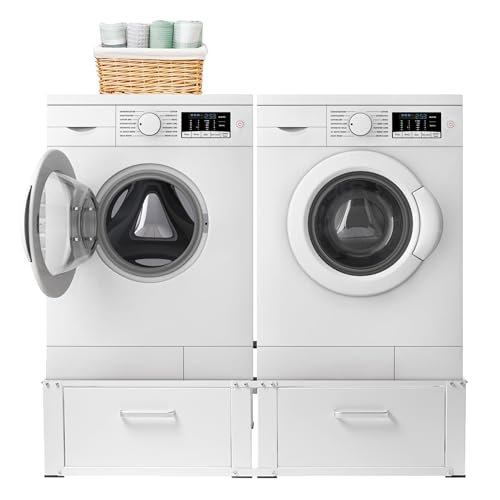 Vonia Tvättmaskinshöjd med låda - Tvättmaskin Piedestal - Tvättmaskinshållare - Tvättmaskinsfot - Tvättmaskinsskåp - Tvättmaskinhus Skåp (Vit, 2 skåp)