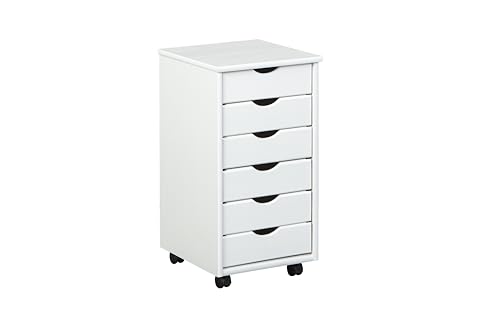 Inter Link - Mobil piedestal - Mobil piedestal med 6 lådor - Kontorspiedestal - Mobilt skåp - Vagn - Byrå - Massiv furu - Vitlackerad Simon, 35 x 40 x 65 cm