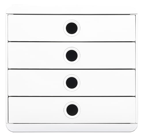 EXACOMPTA - Ref. 310913D - BIG-BOX Black Office - Piedestal med 4 lådor för A4+ - Yttermått: djup 34,70 x bredd 27,80 x höjd 26,70 cm - Vit/hazel/vit