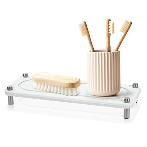 AUAUY Handfat caddie torkar, hem snabbtorkande kök badrum handfat organisatör, kiselgur piedestal stativ upphöjare med rostfritt stål fotskydd, tvålhållare för flaskor tandborstkopp – vit
