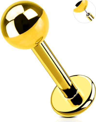 OUFER Body Piercing Trådlös Labret Stud Piercing Guld 6 mm/8 mm/10 mm/12 mm Push-In Lip Bars Titan Helix Tragus-Earring Piercing Jewellery 16G Tragus Helix Lobe Lip Piercing Bars