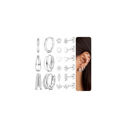Chriscoco 9 par örhängen dam 925 sterlingsilver hypoallergeniska gyllene örhängen kvinnliga piercingöron små ringar silver guld piercing tragus helix, 8 mm y 10 mm, Silver, Ingen ädelsten