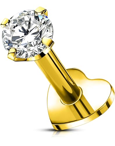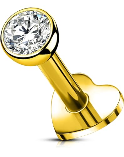 OUFER Body Piercing 16G Titan Helix Örhängen Trådlösa Lip-Piercingar Push-in Klar CZ Guld Hjärta Labret Smycke Bar 1,2 mm 5/6/8/10/12 mm Tragus Conch Labret Cartilage Platt Back Stud, 6mm