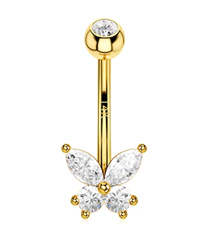 OUFER Body Piercing Navelstänger 14K navelstänger 14G massivt guld navelstänger klar CZ fjäril navel piercing smycken, Gult guld, kubisk zirkonia