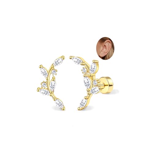 Kakonia 9 stycken 16 g helix piercingar för kvinnor kirurgiskt stål öra piercing fjäril tragus piercing guld silver roséguld dingla platt piercing örhängen brosk helix tragus conch örhängen set, 316L