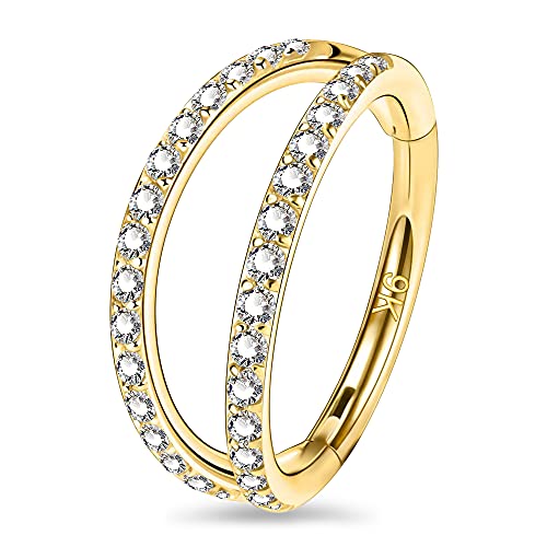 OUFER Body Piercing Helix örhängen piercing ring 16G 9K massivt guld septum ring piercing smycken dubbel linje klar CZ stenlagd daith örhänge tragus piercing smycken e rostfritt stål, colore: 8 mm, cod. GOLDCART027 9K 8mm