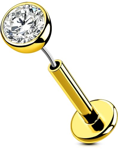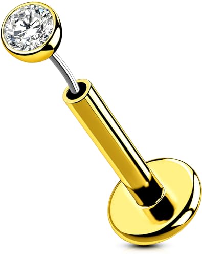 OUFER Body Piercing Flat Back Labret Stud Bar för Helix Tragus Lip Conch 16G titan trådlöst tryck i guld kropp smycken 5/6/8/10/12 mm klar CZ allergivänlig klangörhängen, 5mm