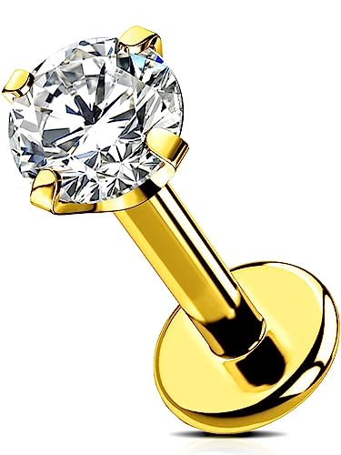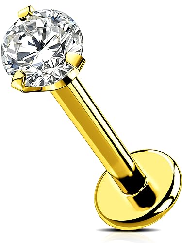 OUFER Body Piercing Flat Back Labret Stud Bar för Helix Tragus Lip Conch 16G titan trådlöst tryck i guld kropp smycken 5/6/8/10/12 mm klar CZ allergivänlig klangörhängen, 6mm