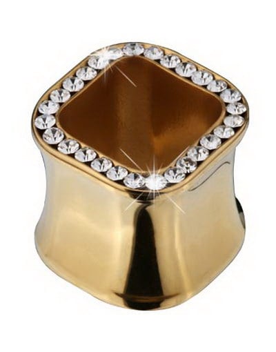 Fyrkantig Tunnel Piercing med Stenar - Guld