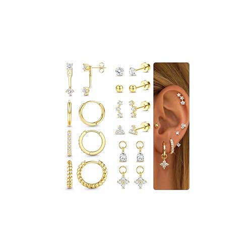 Adramata 12 par örhängen för kvinnor kirurgiskt stål örhängen allergivänliga ringörhängen små CZ örhängen set helix piercing broskörhängen guld silver örhängen för kvinnor, Rostfritt stål
