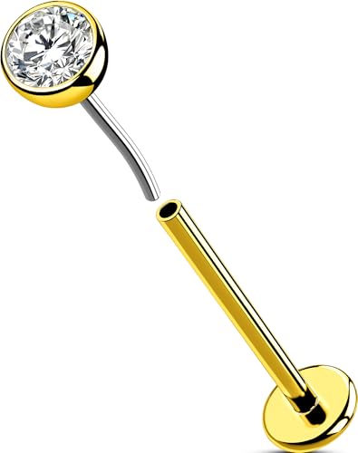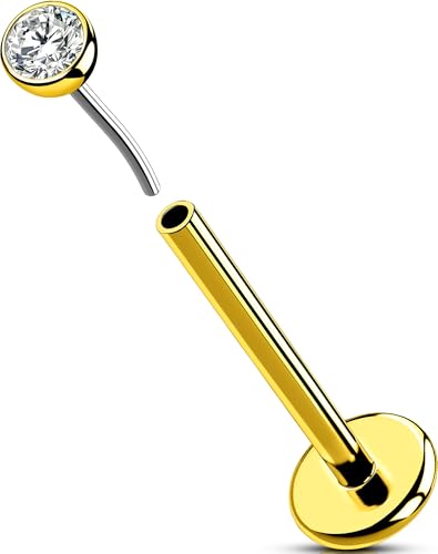 OUFER Kroppspiercing titan guld labret piercing 16 g 5/6/8/10/12 mm trådlös läpp helix tragus snäcka stiftstång smycken tryck in broskörhänge, 10mm, Titan, Kubisk zirkon