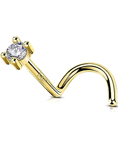 OUFER Body Piercing 14K guld näspiercing, 20 g, L-formad stud näspik, nässkruv med CZ glänsande näspiercing ring för kvinnor, present, flicka, smycken, kroppspiercing, 20G, 9K guld, Kubisk zirkon