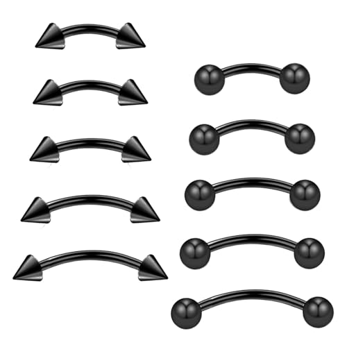 Gojewen 10 stycken Piercing Böjd Ögonbryn Barbell för läppar Daith Rook Helix Sept Vindskyddsbro Piercing 16G Rostfritt stål 6 mm 8mm 10 mm, Metall