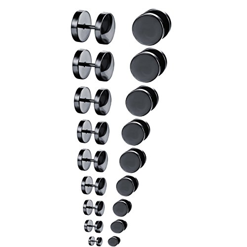 YADOCA 8 par örhängen män svarta örhängen för män rostfritt stål hypoallergen piercing svart öra örhängen för män barn, 21 centimeter, Rostfritt stål