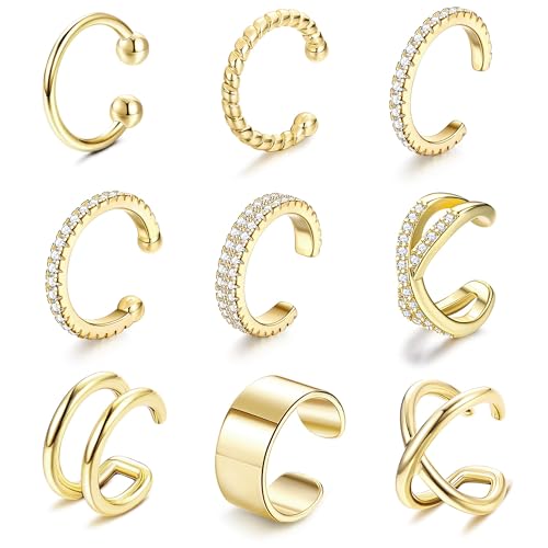 Finrezio 9 stycken öronmuff guld klämma non-piercing örhängen 18 karat förgyllda