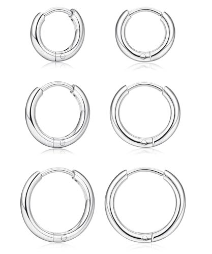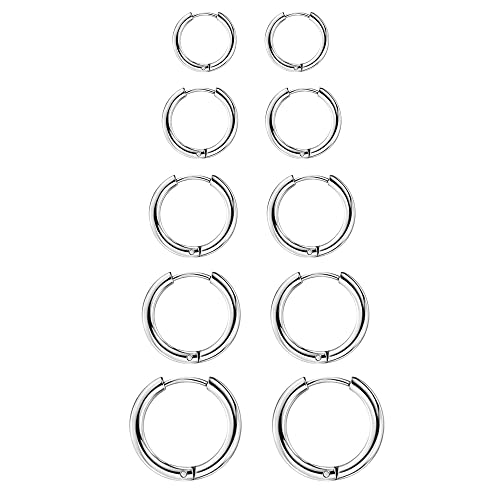 Hoop örhängen silver örhängen set för kvinnor och män, 5 par rostfria ring örhängen små, hypoallergena huggie hoop örhängen piercing brosk örhängen, örhängen för män kvinnor unisex, 8/10/12/14/16 mm