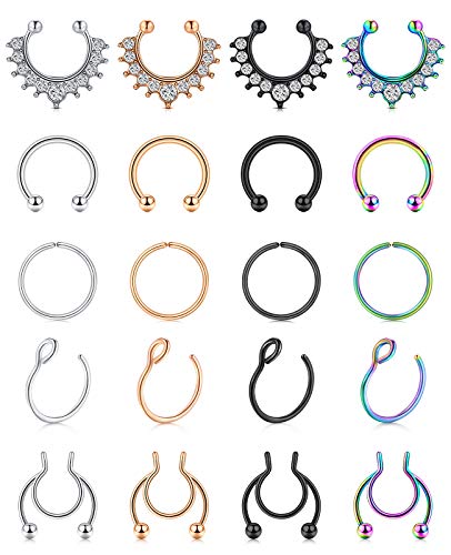 Adramata 16 Stycken Septum Ringar - 16 G Hästsko Piercing, Rostfritt Stål Daith Örhängen, Näsringar, Hoop CZ Brosk, Helix Tragus Örhängen, Septum Clicker Piercing Smycken, 8 Mm, 16 G