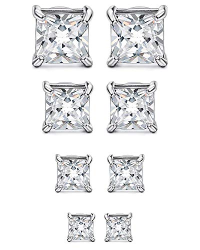 MILACOLATO 4 par magnetiska knoppörhängen i rostfritt stål för män kvinnor runda/fyrkantiga CZ inlagda magnetiska örhängen icke-piercing CZ clip-on stiftörhänge 3 färger 4-7 mm, Rostfritt stål Cubic