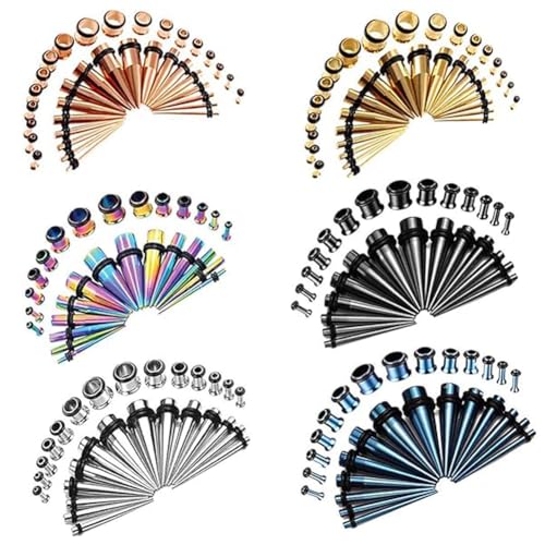 COOEAR Öronmätarsats, piercing tapers, örhängen, proppar, tunnlar, rostfritt stål expanderare, utsträckare, 1,6 mm till 10 mm, 36 delar set. e rostfritt stål, colore: Svart 2, cod. UK-AS0005H-A