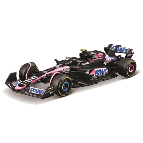 Bburago Formel 1 Alpine A524 (2024): Modellbil i skala 1:43, av förare #10 Pierre Gasly, fönsterlåda, 12,5 cm, svart rosa (18–38219G)