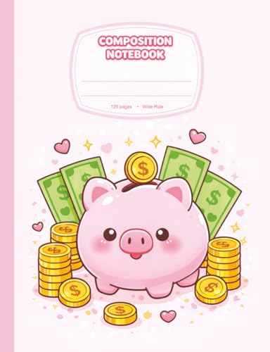 Piggy Bank Kawaii Composition Notebook Wide Rule