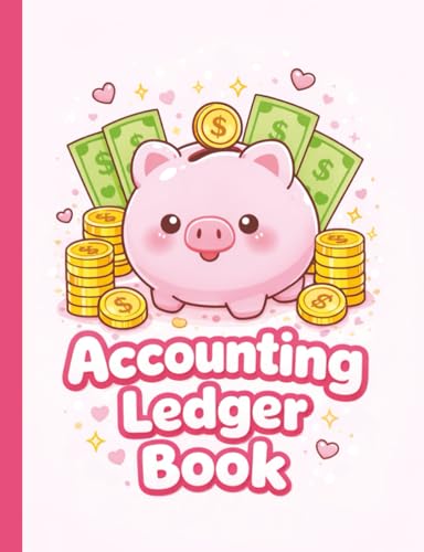 Cute Kawaii Piggy Bank Accounting Ledger Notebook with Extra Grid Pages