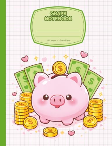 Cute Kawaii Piggy Bank Grid Paper Notebook for Math, School & Graphing