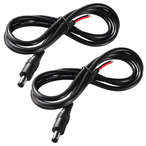 KUOQIY 2 ST 100cm 18 AWG DC Power Pigtails-kabel, DC 5.5 mm x 2.1 mm Hankontakt till Bar Wire Open End Strömförsörjningsersättningssladd, för CCTV-säkerhetskamera, DVR, LED Strip Light Etc