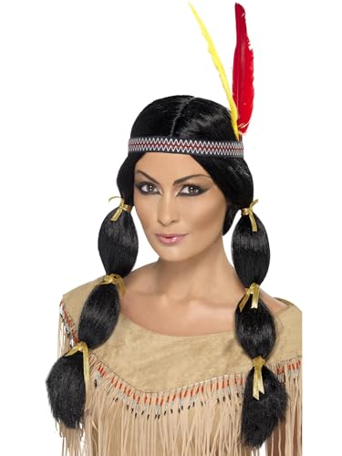 SMIFFYS Svart indianinspirerad svart peruk med pigtails och bandana