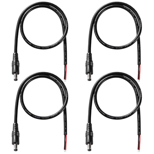 KUOQIY 4 ST 50cm 18 AWG DC Power Pigtails-kabel, DC 5.5 mm x 2.5 mm Hankontakt till Bar Wire Open End Strömförsörjningsersättningssladd, för CCTV-säkerhetskamera, DVR, LED Strip Light Etc