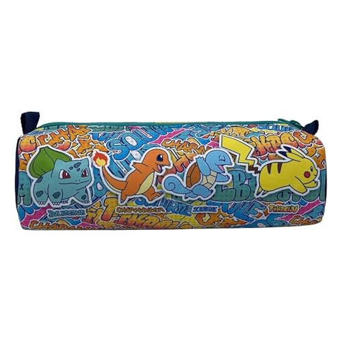 CyP Brands - Pokémon - cylindriskt fodral, pennfodral, skolmaterial, Pikachu, Squirtle. Charmander. Bulbasaur väska, flerfärgad, officiell produkt, Flerfärgad, Estandár
